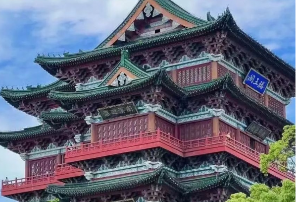 滕王閣的瓦件采用宜興產(chǎn)的碧色琉璃瓦,這種顏色的使用體現(xiàn)了唐宋時期的建筑風(fēng)格。
