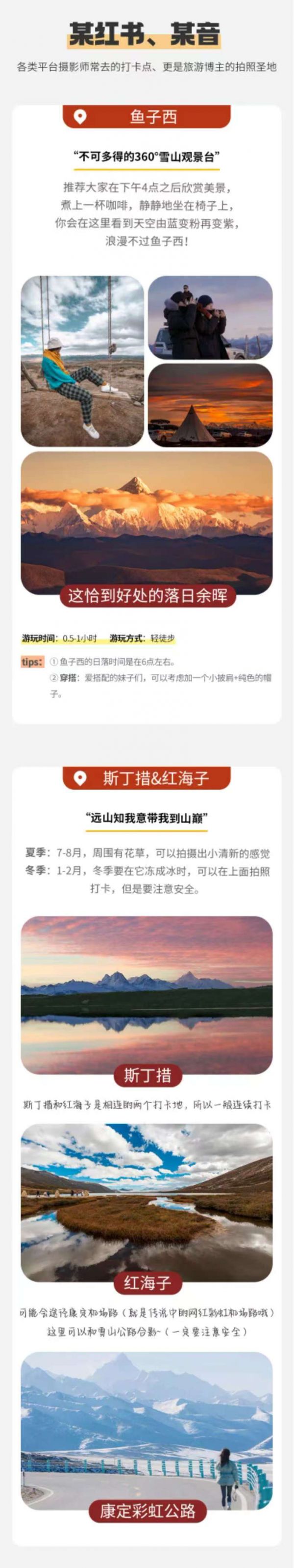 隨后前往【魚子西】在這里你可以感受日照金山的壯闊, 也可以和雅拉雪山來一次近距離的合影,還可以遠眺貢嘎雪山和云海。夜深了,還能看到肉眼可見的星空和銀河。游覽結(jié)束后經(jīng)塔公草原返回新都橋——被譽為“攝影家的天堂”,又被稱為東俄洛,光影變化極其美麗。游覽結(jié)束后經(jīng)塔公草原返回新都橋——被譽為“攝影家的天堂”,又被稱為東俄洛,光影變化極其美麗。