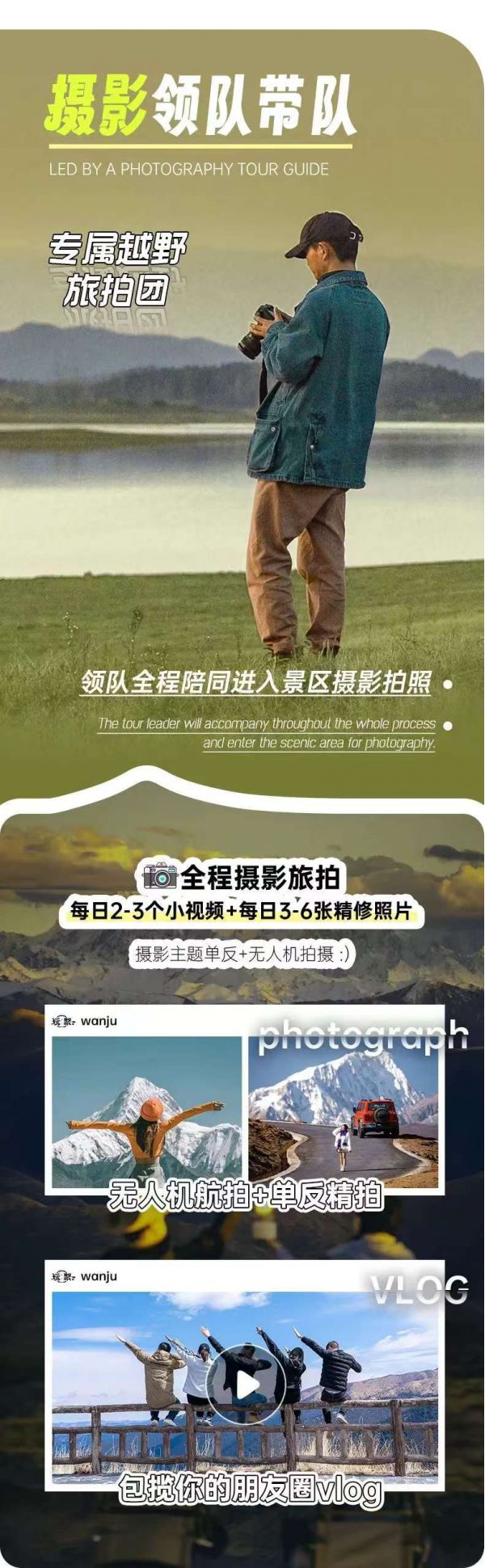專業(yè)司機(jī)兼領(lǐng)隊(duì),全程跟隨進(jìn)入景區(qū)拍照