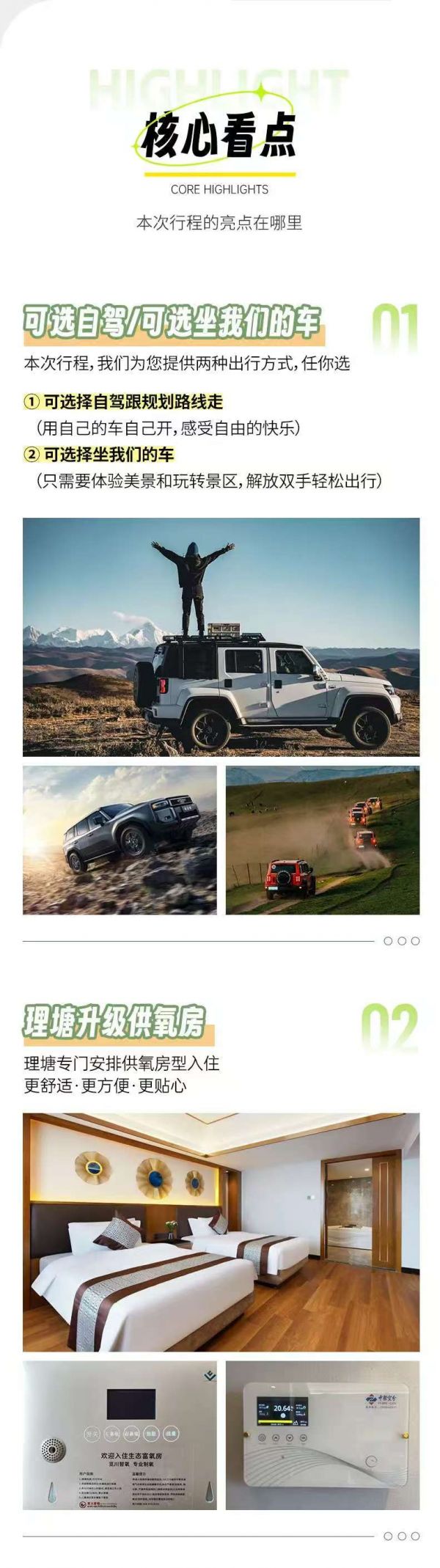 (4)沿途景區(qū)景點(diǎn)、餐廳、廁所、加水點(diǎn)、高原緩沖區(qū)內(nèi)設(shè)有小賣部、超市、旅游紀(jì)念品、手工藝土特產(chǎn)等販賣攤點(diǎn),非我方安排,請(qǐng)游客根據(jù)自身需求及興趣選擇消費(fèi),并保留好購(gòu)物小票以便后續(xù)維權(quán);購(gòu)物時(shí)請(qǐng)保管好隨身攜帶的物品,不到人多、擁擠的地方購(gòu)物,不當(dāng)眾清點(diǎn)錢(qián)包里的鈔票,也不隨商品推銷人員到偏僻地方購(gòu)物或取物。