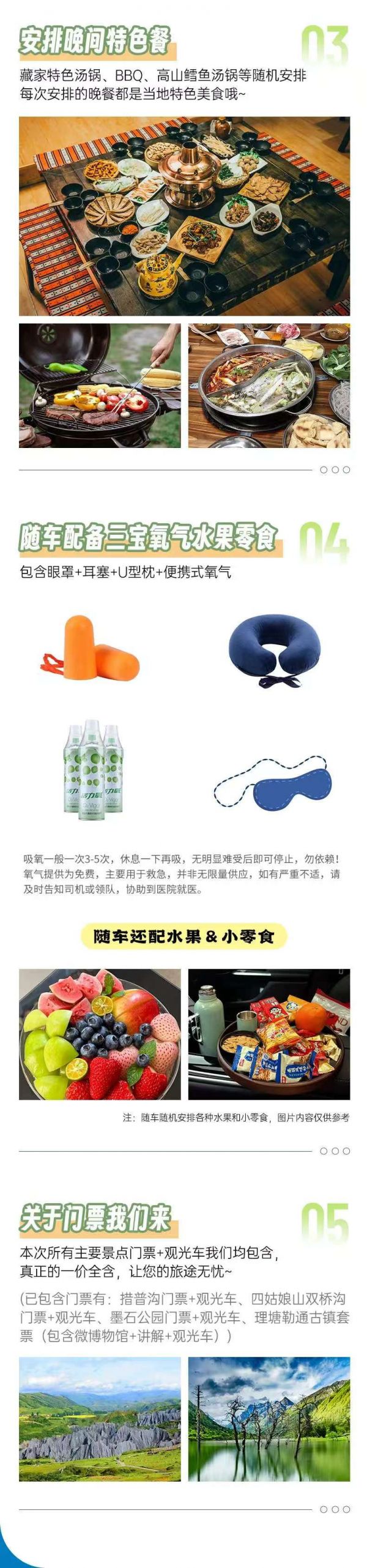 包含措普溝門(mén)票+觀光車、四姑娘山雙橋溝門(mén)票+觀光車、墨石公園門(mén)票+觀光車、理塘勒通古鎮(zhèn)套票(包含微博物館+講解+觀光車)
