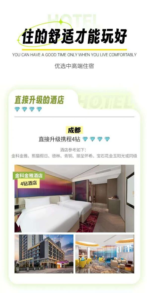 住宿:成都集合日攜程4鉆酒店雙人標(biāo)間