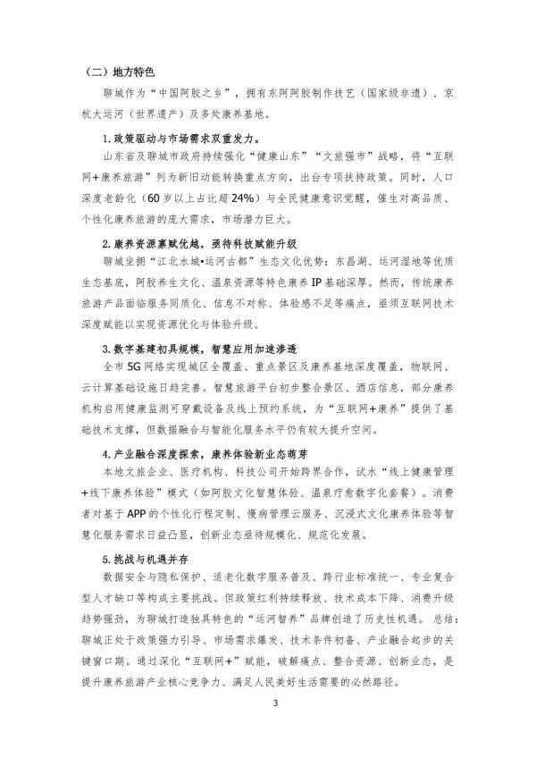 山東省及聊城市政府持續(xù)強化“健康山東”“文旅強市”戰(zhàn)略,將“互聯(lián)網(wǎng)+康養(yǎng)旅游”列為新舊動能轉(zhuǎn)換重點方向,出臺專項扶持政策。同時,人口深度老齡化(60歲以上占比超24%)與全民健康意識覺醒,催生對高品質(zhì)、個性化康養(yǎng)旅游的龐大需求,市場潛力巨大。
