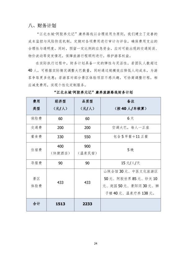 “江北水城·阿膠養(yǎng)元記”康養(yǎng)旅游路線財務(wù)計劃
