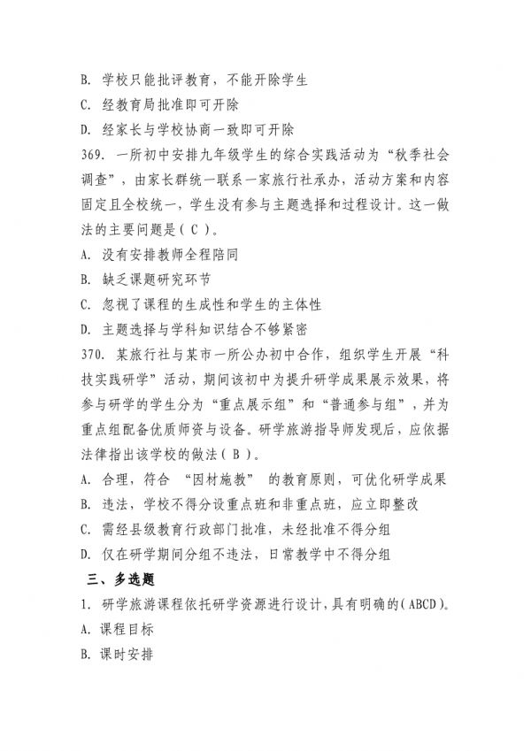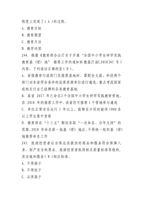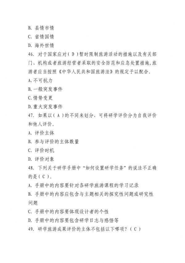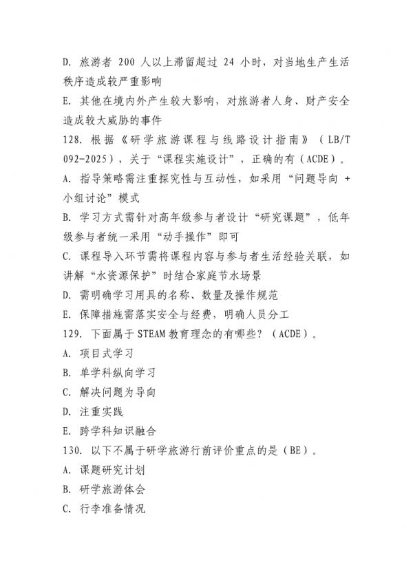 下列鏈接為”山東省“技能興魯”職業(yè)技能大賽 2025 年全省研學旅游指導師職業(yè)技能競賽理論知識測試題庫“