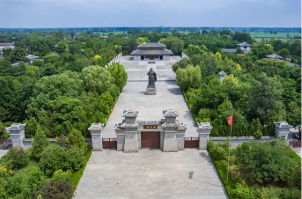 后游覽【蚩尤陵】,蚩尤陵位于山東省聊城市陽谷縣十五里園鎮(zhèn),是為紀(jì)念上古部落首領(lǐng)蚩尤而建的文化遺存,由首級(jí)冢與陵園組成。陵園由錢運(yùn)選規(guī)劃設(shè)計(jì),占地105畝,中軸線分布陵門、蚩尤銅像(高10.8米)、祭壇等九座建筑 。據(jù)《漢書》《史記》等記載,蚩尤戰(zhàn)敗后首級(jí)葬于東平郡壽張縣闞鄉(xiāng)。