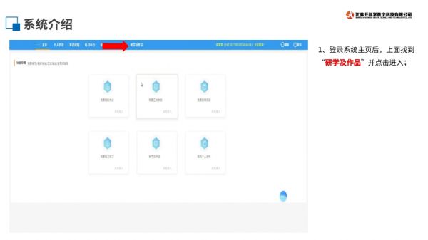 1.登陸系統(tǒng)-點擊“研學及作品”。