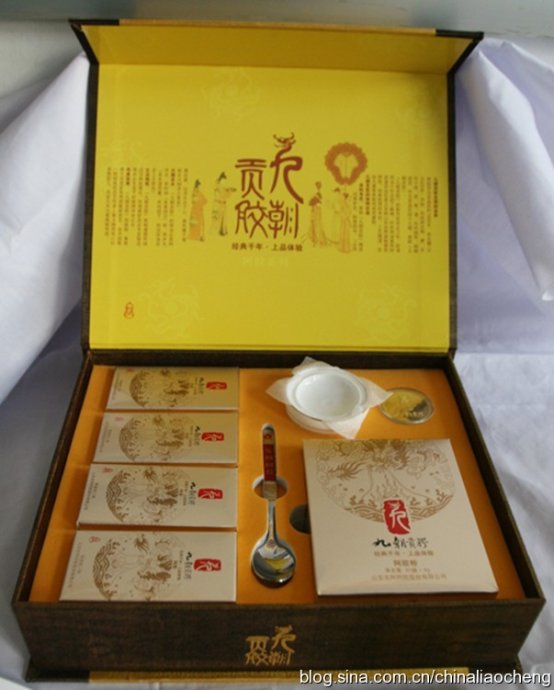 李時(shí)珍在《本草綱目》中稱之為“圣藥”。與人參、鹿茸并稱“中藥三寶”。有關(guān)阿膠的記載最早見于《神農(nóng)本草經(jīng)》,距今約有二千年。書中寫道:阿膠“生東平郡,煮牛皮作之,出東珂。”可見阿膠最初是用牛皮熬制的。傳至唐代,人們發(fā)現(xiàn)用驢皮熬的阿膠,藥用功效更好,便將牛皮改為驢皮,并沿用至今。