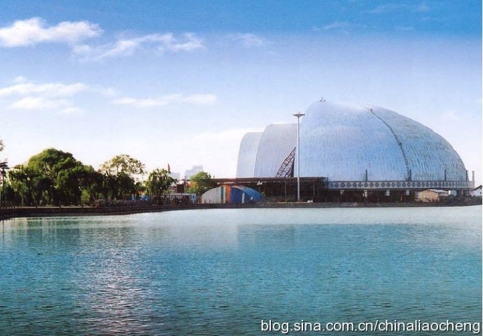 劇場(chǎng)的整體結(jié)構(gòu)造型設(shè)計(jì)新穎獨(dú)特,不僅傳承了中國(guó)傳統(tǒng)的建筑風(fēng)格,同時(shí)也傳遞了西方的建筑文化理念。劇場(chǎng)占地面積9900平方米,高度 33米,直徑86米。劇場(chǎng)下部為鋼筋混凝土底座,具有抵抗七級(jí)地震的能力。劇場(chǎng)上部為能夠旋轉(zhuǎn)的拱形鋼結(jié)構(gòu),外觀為一大一小半球形狀,兩個(gè)半球之間有過(guò)渡拱(3號(hào)拱)銜接。西面小的半球(1號(hào)拱和2號(hào)拱)是固定不動(dòng)的。東面大的半球(4號(hào)拱)可以進(jìn)行水平方向180度的旋轉(zhuǎn)。中間3號(hào)拱可以東西平移。這種開(kāi)啟、閉合的獨(dú)特功能在全國(guó)是獨(dú)一無(wú)二的,可以使觀眾充分領(lǐng)略到露天劇場(chǎng)與封閉劇院兩種效果的不同風(fēng)采。