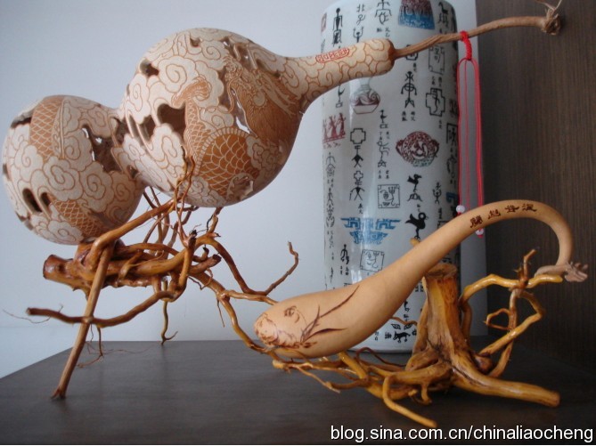 早期雕刻葫蘆大體分為三種:一是“一細葫蘆”。用料考究,精工細刻,圖案主要有“八仙人”、“二龍戲珠”及戲劇人物等。二是“二細葫蘆”。用料稍次,圖案主要是魚、蟲、鳥、獸等。三是“花葫蘆”。葫蘆著色后,用刀簡單地刻出豆腐塊絡(luò)或圖案,正中開個梅花蓋就為成品。產(chǎn)品主要銷往盛產(chǎn)蚰子(蟈蟈)的浙江、云南、貴州、陜西、山西等地,供裝蚰子之用。雕刻葫蘆,制作比較簡單,地方特色濃,深受人們的喜愛,成為聊城一種獨特的傳統(tǒng)工藝品。
