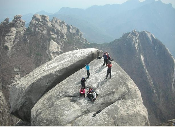 北漢山位于韓國首都首爾北面,其名字意為北面最大的山,也被稱為三角山、負兒岳。巨大花崗巖形成陡峭曲線是北漢山的最大特點,高聳的巖峰和巖峰間流淌著的清澈溪谷斷然可見。山峰千姿百態(tài),其中有836.5m的白云峰,巖峰和樹木之間生存有1,300余種動植物。巖峰中的第一高峰是仁壽峰的奇巖,世界聞名的懸崖仁壽峰達200m以上,光是路線就有100多個。站在白云臺頂上,透過云層,漢城和漢江一收眼底。