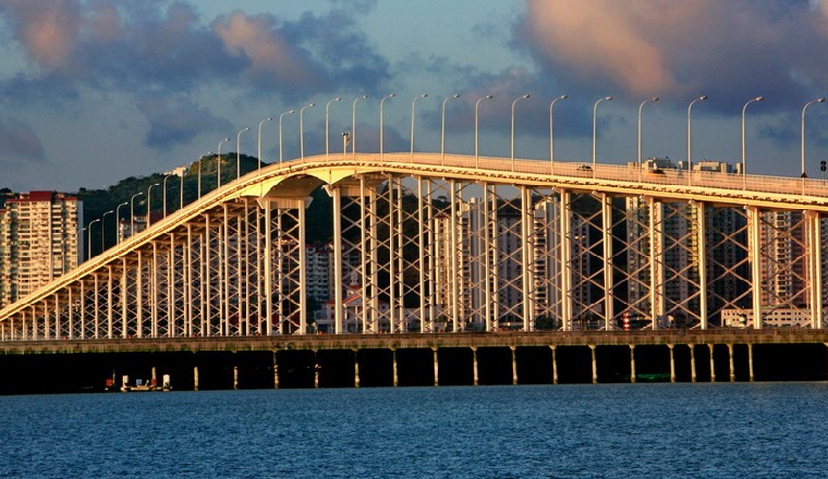 澳門(mén)鏡海長(zhǎng)虹,寬9米,有雙線往返車(chē)道,只適用于輕型車(chē)輛通過(guò)。