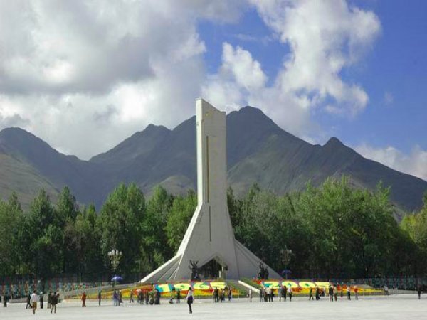達扎路恭紀功碑位于西藏展覽館前公路南側(cè)。赤松德贊普在位時(755-797)所立。石碑立于高l.92米,面積22.25平方米的正方形基上。臺基正中為三級階梯形碑座,高1.32米。碑身通高巴米,呈方柱形,下寬上收。碑身北、東、南三面均刻有藏文楷書,北側(cè)有字68列,東側(cè)16列,南側(cè)74列。碑身完好,碑文大部分尚可辨認。