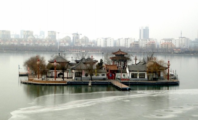 湖心島坐落在聊城東昌湖西北角,面積2750平方米,主要建筑有望岳亭、溢香齋、翠園、沁園、金魚(yú) 館、石刻雕塑等。望岳亭在島的西北角,高7.8米,占地80平方米,黃琉璃瓦垂檐六角攢尖頂,六柱拱托,柱間設(shè)有坐凳,供游人休息。版權(quán)所有山東聊城聊之旅國(guó)際旅行社有限公司,轉(zhuǎn)載必究!垂檐內(nèi)均繪《聊齋志異》中胭脂故事。建筑精巧宏麗,與光岳樓遙遙相對(duì)。溢香齋位于望岳亭北側(cè),為殿堂式歇山頂建筑,共3間,占地60平方米。島的東側(cè)和中部為翠園,南部為泌園。西南為金魚(yú)館,石刻雕塑設(shè)于后花園。
