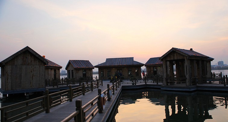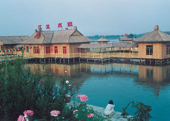 江北水寨位于聊城古城西側,中國垂釣基地南面,整個水寨采用竹木結構,保留本色,全部建筑浮于湖水碧波之上,總建筑面積640余平方米。