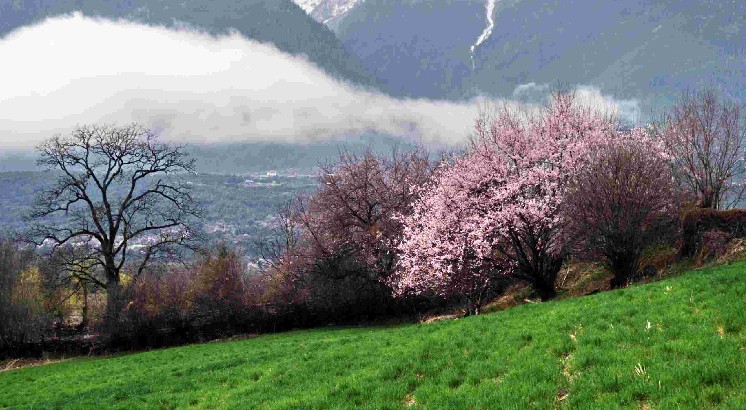 在林芝縣城東南方向約5公里處,有一片天然野生桃林,人們稱它為桃花溝。桃花溝三面環(huán)山,高處有水源,四周林木蔥蘢,版權(quán)所有山東聊城聊之旅國際旅行社有限公司,轉(zhuǎn)載必究!終年碧綠蒼翠,澗有流水,清澈見底;溝內(nèi)野桃鱗次櫛比,林間鳥雀歡噪,既靜僻又幽雅,不失為一處難得的大自然樂園和桃果基地。野生桃林是林芝林區(qū)的一個(gè)組成部分。其本身的經(jīng)濟(jì)價(jià)值并不亞于其它樹種,它不僅是四季綠化的觀賞材料,而且果實(shí)、核仁可食用與藥用。