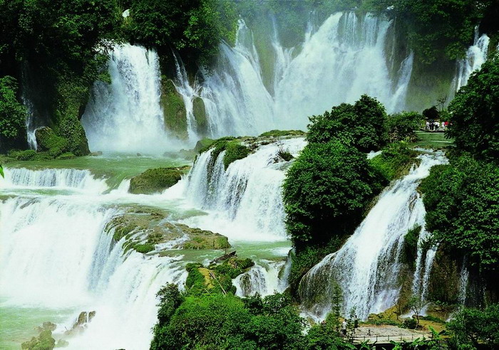 背崩瀑布-冬天水小時(shí),嫵媚秀麗,輕輕下瀉,深沉悠揚(yáng);夏天水量增大,那撼天動地的磅礴氣勢,恰似巨龍出山,令人驚心動魄。有時(shí)瀑布激起的雪沫煙霧,高達(dá)數(shù)百公尺,漫天浮游,竟使周圍一帶經(jīng)常處于霏霏細(xì)雨之中,成為別致的"匹練掛遙峰"。