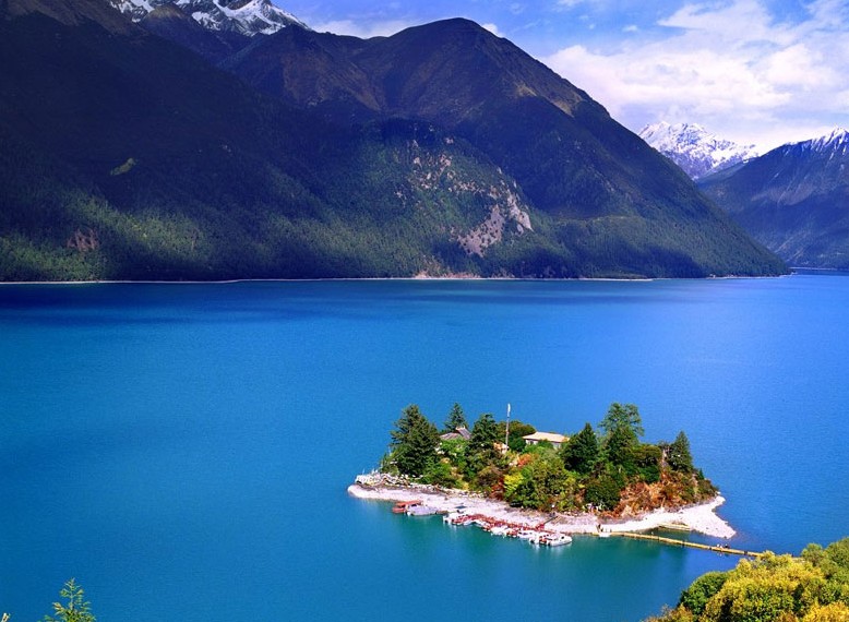 錯(cuò)高在藏語中意為綠色的水,也稱為"巴松錯(cuò)"。它距工布江達(dá)縣50多公里,是紅教的著名神湖。湖形狀如鑲嵌在高峽深谷中的一輪新月,長約12公里,湖寬幾百至數(shù)千米不等,最深處60多米,總面積6千多畝。湖水清澈見底,四周雪山倒映其中,黃鴨沙鷗白鶴等飛禽浮游湖面,湖中則是游魚如織,分外寧靜。湖心扎西島上有錯(cuò)宗工巴寺,建于唐代末年。島上的礁石均雕刻成了別致的動物形象以及佛像。錯(cuò)宗寺為土木結(jié)構(gòu),上下兩層,殿供強(qiáng)巴佛千手觀音和金童玉女。寺南有一株桃和松的連理樹,春天時(shí)桃花與青松相映,煞是好看。錯(cuò)宗工巴寺寺僧與信從們都乘獨(dú)木舟往來。每值春季,湖四周群花爛漫,雪峰陳列并倒影湖中,景色宜人至極。湖西北還有一5平方米大的巨石,大石中心有一可供一人鉆過的洞,據(jù)說能鉆此洞可消災(zāi)除病。作為紅教著名的神糊。每年來此轉(zhuǎn)經(jīng)觀湖的群從非常多。