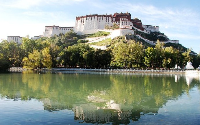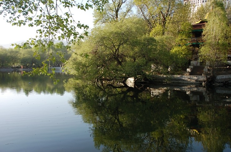 龍王潭(藏語日魯康)是拉薩著名的園林建筑之一。園林中心有一面積較大的潭水,傳說六世達(dá)賴倉央嘉措曾從墨竹工卡迎請墨竹賽欽和八龍供奉于北潭水中,所以稱龍王潭。龍王潭初建于六世達(dá)賴倉央嘉措時期,但其中潭水坑形成的卻較 早,至五世達(dá)賴羅桑嘉措時期修建布達(dá)拉白宮和第巴桑結(jié)嘉措所筑布 達(dá)拉紅宮及經(jīng)房僧舍時,從山腳大量取土而形成大水潭。