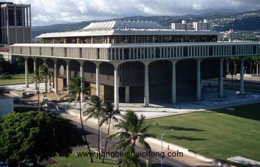 夏威夷州議會大樓,自1969年起這里成為夏威夷州政府所在地夏威夷的經濟主要以旅游業(yè)為主,其美麗的熱帶風光每年吸引數(shù)以百萬計的全世界各地游客。