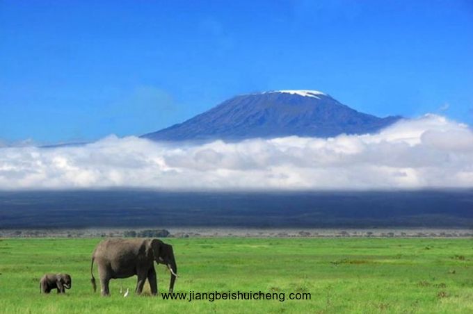 乞力馬扎羅山是坦桑尼亞的象征,山高19344英尺,是非洲最高的山峰,也是世界上適合步行的最高山峰。其底部的直徑長達40英里,峰頂?shù)幕鹕娇诒槐ǜ采w,蔚為壯觀。各國游客可到肯尼亞境內(nèi)眺望此山,卻必須進入坦桑尼亞才可攀登。