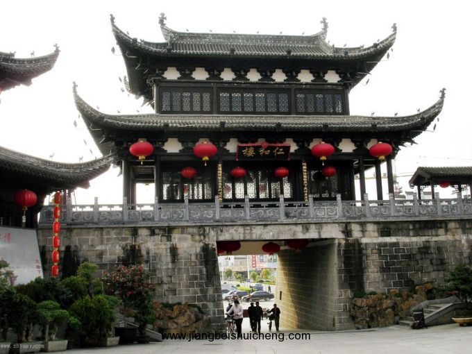 基本保持宋代的建筑風(fēng)格,介紹說其中的“排柵柱”乃正宗宋代“營造法”,今已很難見到,也就是它的城門是用了13對(duì)柱子頂起,可惜因年代久遠(yuǎn),現(xiàn)在有的柱腳已腐爛。