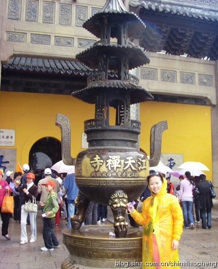 雨中的金山是美麗的,江天禪寺也是美麗的,“樹(shù)影中流見(jiàn),鐘聲兩岸聞”不正是形容的金山江天禪寺嗎。清康熙帝于1687年秋登臨金山,因觀其上接蒼冥,下連洪流,江天一色,故賜名“江天禪寺”并沿襲至今??梢?jiàn)其景之美啊。今天的游覽到此結(jié)束了,雨中的金山是美麗的,沒(méi)有令人失望啊。