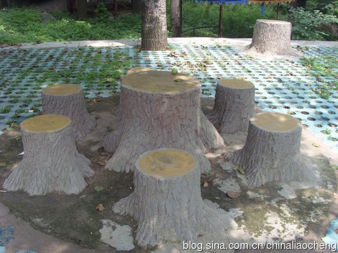 做成樹木的帶有原始形態(tài)的桌椅,讓人看了覺得很美觀