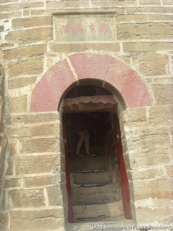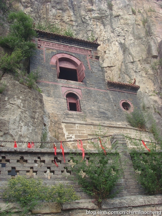 這正是建在懸崖峭壁上的織女洞洞口,洞口是二層樓閣式古建筑,很有現代特色