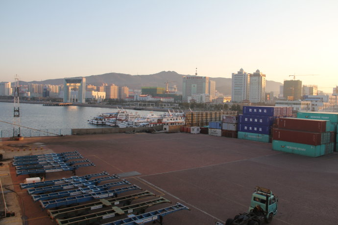 這是以仰視的角度來拍的威海船只,這樣的角度讓威海船只顯得更為龐大,他讓威海的碼頭在我們心中更重了一分。