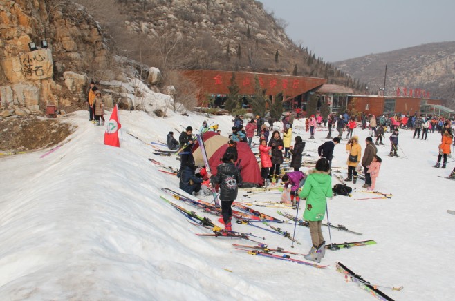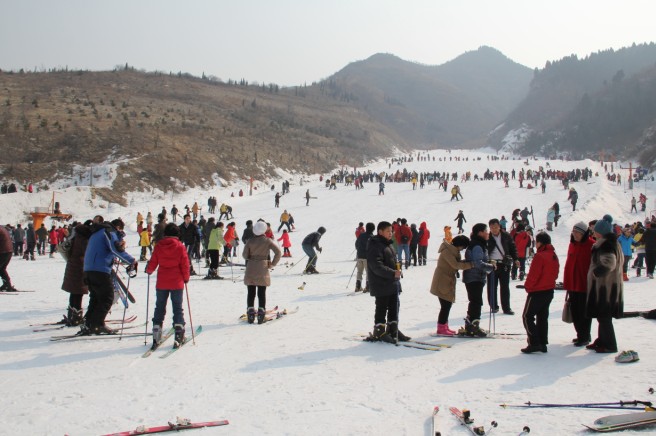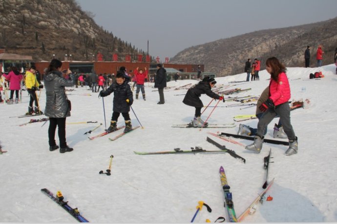 從飄揚(yáng)的旗幟可以看出滑雪愛(ài)好者的重多!