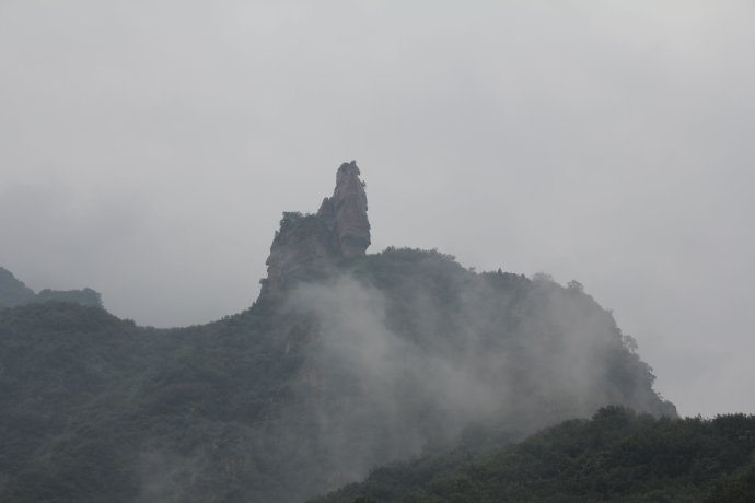 看對面山峰那個貌似頭戴方巾,長須飄胸的老者似乎在講著什么,那就是“老子布道”,真的好像老子端坐在那一樣。想爬上山看看呢??墒呛酶咴趺崔k?!誒??!~那是???