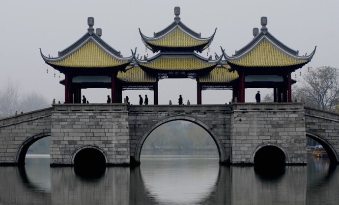 不知不覺(jué)中,我們已經(jīng)進(jìn)入了二十四橋景區(qū)。“二十四橋”出自唐代著名詩(shī)人杜牧的詩(shī)句“青山隱隱水迢迢,秋盡江南草未凋;二十四橋明月夜,玉人何處教吹蕭”。