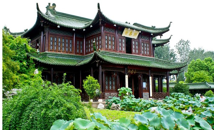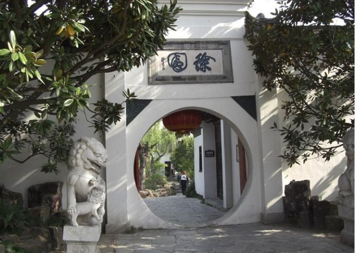 長(zhǎng)堤的盡頭便是“徐園”徐園中有一館、一榭、一亭,外有曲水,內(nèi)有池塘,花木竹石,恰到好處,充分體現(xiàn)了江南園林的精巧雅致。