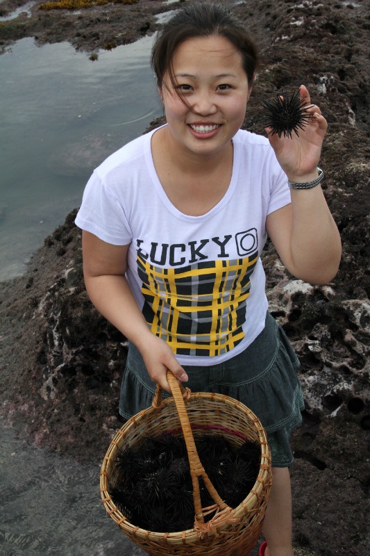 哈哈,看我撿了這么多海膽,想不想來一個