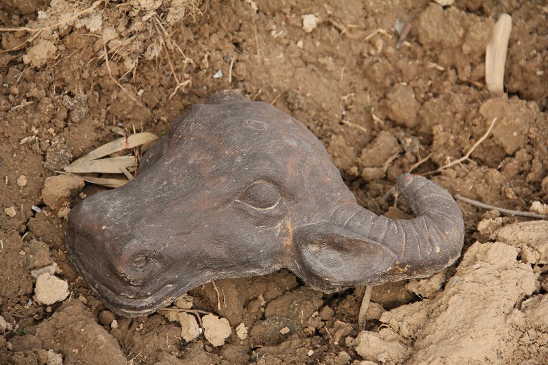 土里埋著的半個牛頭十分神秘