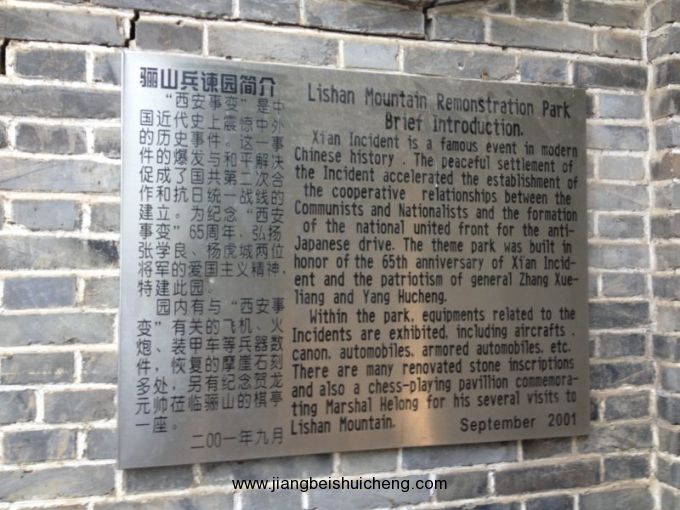 上山有臺階路3200多米,先來到驪山半山腰“斑虎石”處,便見兵諫亭,是為紀(jì)念西安事變而建。