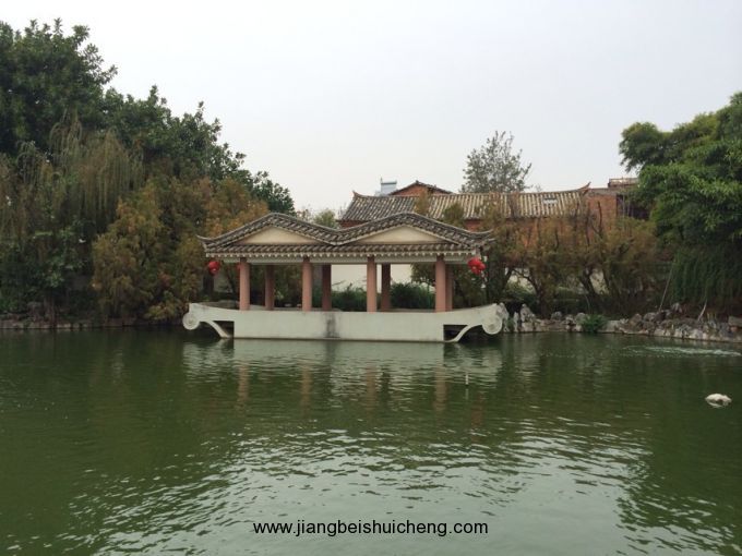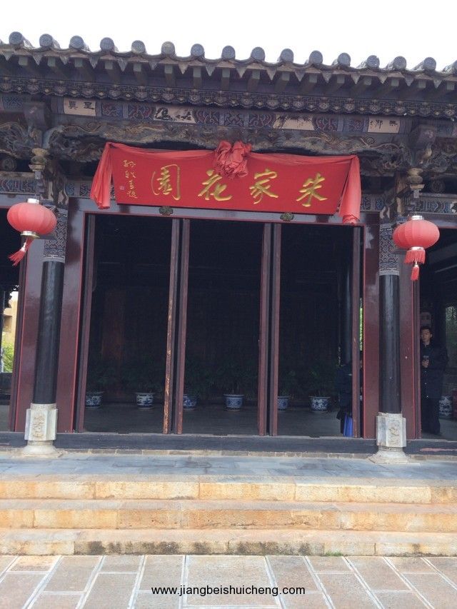 朱家花園坐南朝北,入口為垂花大門。左側沿街的10間“呆腳樓”與其后的“跑馬轉角樓”相連,是當年的帳房和資供應鋪面等,是朱家經(jīng)營進出口貿易,買賣大錫、洋紗布匹、食鹽、煙土的“朱恒泰”總商號。右側前為家族祠堂,后為內院。祠堂前有水池,水上有戲臺、亭閣、庭蔭花木等。水池邊有右欄。