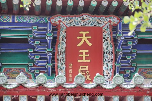 經(jīng)甬道過(guò)碑林后便是天王殿,三間重檐歇山頂?shù)钐茫饷嬗袃纱蠼饎?,?nèi)里則是四大天王像,威武雄壯。
