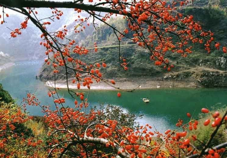 蟒河旅游風(fēng)景區(qū)位于山西省陽城縣東南蟒河鎮(zhèn)與河南省濟(jì)源市交界處,面積120平方公里,主峰海拔1572米。蟒河景區(qū)有“秀、險、幽、奇”四大特點,享有“北方小桂林”的美譽(yù)。這里一年四季均有迷人勝景,尤以秋天看層林盡染最為賞心悅目。蟒河水從蟒河村東流過,水清如碧玉,奔流似巨蟒;莽山又在蟒河村東流過, 水清峰錯列,鬼斧神工,妙境天成,有千峰擁黛,萬壑云飄之象。景區(qū)內(nèi)懸崖飛瀑直瀉,深谷流水淙淙,百鳥啼鳴林間,野花競相開放。起源古老的珍奇植物青檀、蘭草、山萸樹、領(lǐng)春木、牛鼻酸、紅豆杉星散其間,獼猴、大鯢、麝、金貓、金雕、金錢豹等或嬉驃林莽,或翱翔藍(lán)天。望莽孤峰拔地而起,狀如巨塔,水簾洞飛珠成簾、集水萬狀;試劍峰如干將出鞘,鋒芒逼天,蟒湖上碧波漣漪、白帆點點;鍘刀縫好像天斧劈開,石人峰酷似云游行僧;窟窿山中通一孔令人稱奇。山色之優(yōu)美,古跡之奇異,令人耳目一新。