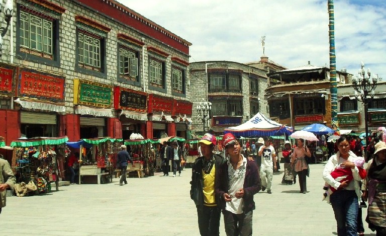 15世紀后,大昭寺成為佛教傳播的中心,其周圍相繼出現僧人宿舍、宗教學校、小寺廟建筑,眾多信佛者遷居大昭寺周圍生活,街上逐漸出現了大量民居、店鋪、旅館、手工作坊等設施。隨大昭寺宗教地位的加深,藏傳佛教認為,以大昭寺為中心順時針繞行為“轉經”,表示對供奉在大昭寺內釋迦牟尼佛像的朝拜,八廓街成為拉薩三大轉經道(大轉、中轉、小傳)之一。后又出現了來自蒙古、漢地、克什米爾、尼泊爾、不丹、印度等地區(qū)和國家的眾多商販、香客、游民,發(fā)展成為集宗教街、觀光街、民俗街、文化街、商業(yè)街和購物街于一身的街區(qū)。