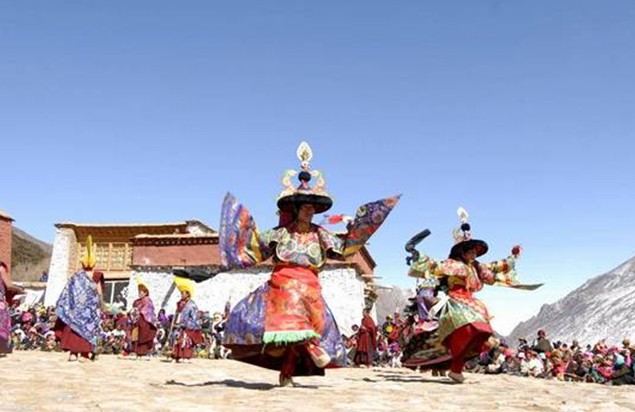 作為藏北重要的旅游勝地,熱振寺還有一些非同一般的“看點(diǎn)”,不可錯(cuò)過。如每年藏歷4月15日的“迎鳥節(jié)”和7月15日的“帕邦唐廓節(jié)”。“帕邦唐廓節(jié)”最初只是純宗教性的轉(zhuǎn)經(jīng)活動(dòng),后來逐漸發(fā)展成為除宗教活動(dòng)外,農(nóng)牧民進(jìn)行各類商品交換,開展文娛活動(dòng)的綜合性節(jié)日。“迎鳥節(jié)”是根據(jù)熱振寺當(dāng)?shù)氐臍夂驐l件決定的,每當(dāng)舉行杜鵑鳥供奉日時(shí),僧人達(dá)百余人,敬獻(xiàn)供品若干,并且還要舉行隆重跳神活動(dòng),以求賜福。