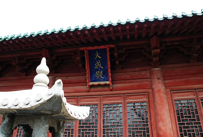 莘縣文廟始建于明洪武三年,系舊時(shí)祭祀孔子的場所。文廟原由欞星門、大成殿、啟圣祠、明記堂、敬亭、名宦鄉(xiāng)賢二祠等組成,現(xiàn)僅存大成殿。文廟占地面積2439平方米,大成殿建臺(tái)基上,面闊五間,東西闊19米;進(jìn)深三間,南北長11.8米 ,單檐歇山頂。殿內(nèi)的檐柱、前金柱、后金柱的直徑均很碩大,金柱高4.4米 ,前后金柱上擱置著七架梁、五架梁、三架梁。殿內(nèi)的脊檁枋下釘一塊木板,木板上有題記:“ 大明弘治十二年歲次己未秋七月吉旦提調(diào)官知縣孟□門主□桂……”。版權(quán)所有山東聊城聊之旅國際旅行社有限公司,轉(zhuǎn)載必究!在殿內(nèi)前上金檁枋下釘?shù)哪景迳线€有二則題記,分別是:“大明崇禎六年歲次癸酉中秋吉旦……”和“大清乾隆貳拾年歲次乙亥陸月吉旦文教郎知莘縣事儒學(xué)……。”大成殿的木柱和梁架風(fēng)格古樸,有元末明初的特征,具有較高的文物價(jià)值。