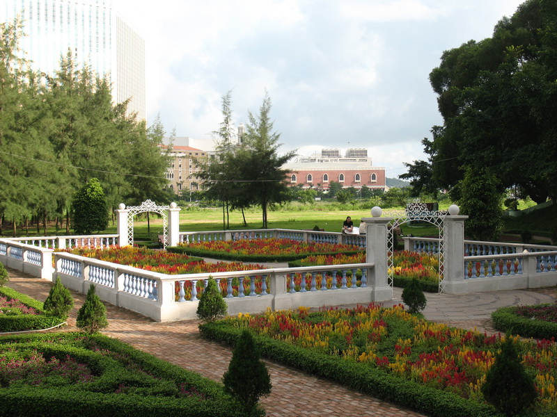 海灣昔日曾為水上飛機(jī)起落點,一九六八年后形成了海灘一大片紅樹林。岸邊砰石馬路旁,五座一列的葡式建筑,興建于一九二一年,如今掩映在綠樹中,成為游人喜到之處,更成為拍攝婚紗相的好地方。