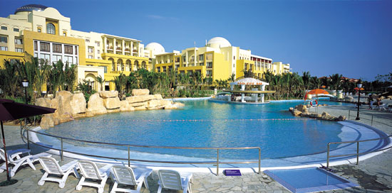 海洋溫泉以“海洋、溫泉、健康、娛樂、世界之旅”為基本構(gòu)想,以現(xiàn)存的或是歷史上曾經(jīng)存在過的世界各地溫泉設(shè)施為母題建筑背景,以北非摩洛哥建筑風(fēng)格為主,融合中西建筑文化精華,將古老的建筑文化與現(xiàn)在設(shè)計(jì)理念相結(jié)合,呈現(xiàn)地中海浪漫風(fēng)情。