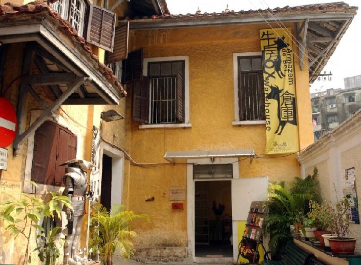 牛房倉庫原先是檢疫牛只的倉庫,現(xiàn)在是澳門藝術(shù)團(tuán)體“婆仔屋藝術(shù)空間”的展覽地。牛房倉庫旁邊有間小巧的書店,淡淡的音樂像香熏般在房間里擴(kuò)散。書店里面有個(gè)很像設(shè)計(jì)者辦公室的地點(diǎn),凌亂、狹窄,但有品位。