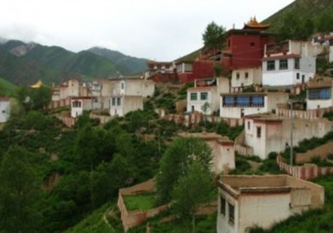 當卡寺全稱為(Damkar Lhundrub Dechen Chokhor Ling),位于青海省玉樹州藏族自治區(qū)首府結古境內(nèi)東面約十公里處,倚山而建,勢如觀音靜息狀,下以八龍盤據(jù)之態(tài),莊嚴神圣。
