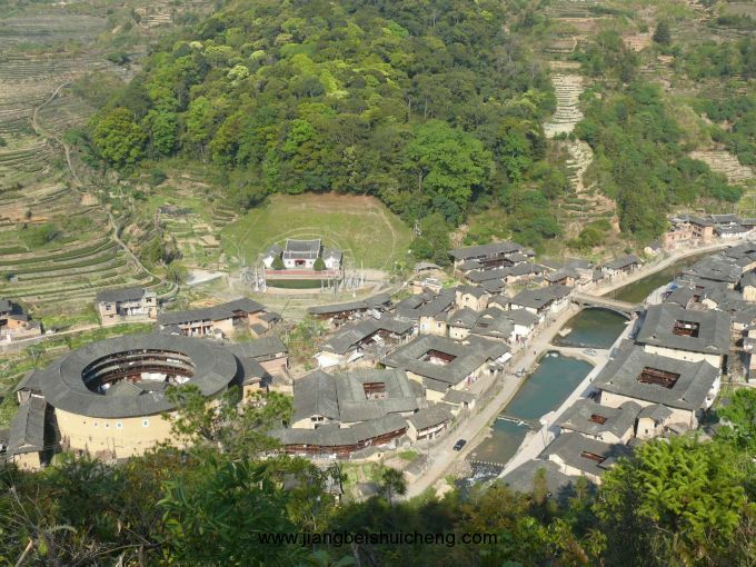 于是,張姓族人沿著溝谷兩旁,建造了一座座集居住、防御等功能于一體的圍合型土樓建筑。最早的土樓福興樓建于明代崇禎四年(1631年),為七世東崖公所建,以后又陸續(xù)建造42座土樓,有方形、圓形、圍裙形、曲尺形等,這些土樓沿山溪呈長形擺布,高大雄渾,氣勢恢宏。版權所有,山東聊城聊之旅國際旅行社有限公司,轉(zhuǎn)載必究!清末后,由于地理環(huán)境所限,張姓族人在沿溪兩岸的空地上,又建起了一座座單院式土木、磚木結構的吊角樓,形成大樓帶小樓、高低錯落布局的奇妙景觀。樓前屋后鋪就的卵石小徑,被幾百年先人們的足跡磨得圓潤,細雨輕煙,閃出柔和的光澤。