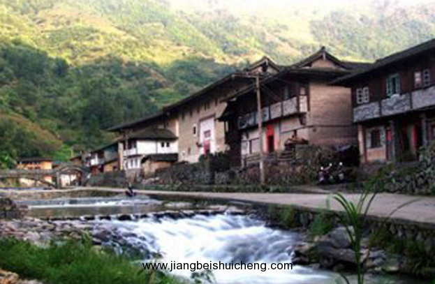 塔下村是一個中國典型客家村落。這里兩座自南而北的蜿蜒大山,如巨臂攬住一道生機勃勃的峽谷,山中古木參天,碧綠如黛;竹林茂密,翠接云天;林陰深處,青氣浮?。坏\霧,劃出幾道弧線,托出村落恍若蜃樓的起伏檐角。一道彎彎曲曲的山溪從峽谷中穿過,溪水快快活活地流淌,水色清明澄碧。清純?nèi)玑劦目諝?,讓人嗅出許多逝去的年代,追尋歷史行走的印記。為敬奉先祖,弘揚祖德,塔下張姓族人于明朝后期在村莊東面山坡、肇基始祖原住地上建造了“張氏家廟”德遠堂。家廟后面是一片眉月形斜坡的草地,宛若天然地毯。草地連著一片蔥郁的風水林,樹林隨著山峰向上延伸,直入云天,風吹林濤,氣勢磅礴。版權所有,山東聊城聊之旅國際旅行社有限公司,轉(zhuǎn)載必究!家廟前是一口半圓形池塘,塘中魚兒遨游,廟宇疏影,給人增添了幽美的意境。池塘前邊兩側石坪上聳立22支高過10米的石龍旗桿,桿柱浮雕蟠龍,騰云駕霧,勢欲騰飛。村中那條奔流不息的溪流,每天都把清澈和潔凈送到家家戶戶,這條與村民息息相關的溪流,建國前從村頭到村尾只有三座木橋。若遇山洪暴發(fā),木橋被沖毀,只相隔30多米寬的兩岸村人便中斷過往,后來在熱愛家鄉(xiāng)的僑胞資助下,溪流上建造了11座石拱、鋼筋水泥橋,使兩岸村莊衣帶相連。小橋流水、土樓人家,把塔下村裝點得分外妖嬈。陽光燦爛的清晨,村婦們提著木桶,領著孩子,到溪邊洗衣,把鮮艷的色彩和款款的談笑聲一起流進水里,閃閃爍爍。