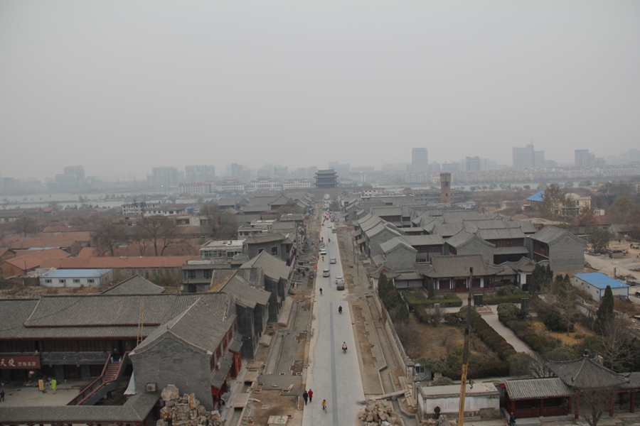 登樓遠(yuǎn)眺北城門,遙望新城區(qū)。
